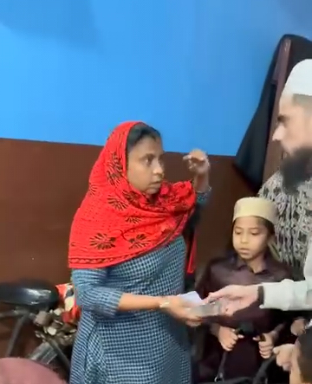 पैसों भरे बैग से लोगों को पैसे बांटता दिख रहा है, पुलिस ने पूछताछ के लिए हिरासत में ले लिया